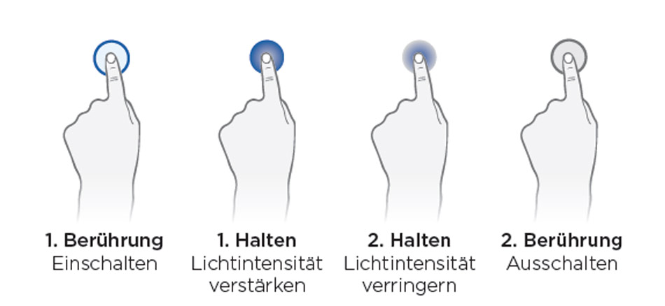 Das Licht kann mit einfachen Gesten oder Berührungen gedimmt, verstärkt, ein- oder ausgeschaltet werden.